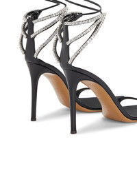 111 rhinestone-embellished sandals Highlights - Black - Tie-fastening straps - Rhinestone embellishment - Crossover strap at the toe - Pointed toe Made in Italy Composition Sole: Leather 100% Outer: Polyurethane 100% Lining: Calf Leather 100% SIZE & FIT Measurement HEEL 4.33 in(11 cm)