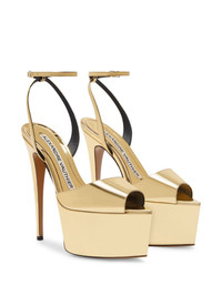 116mm metallic finish sandals Highlights - Gold-tone - Buckle-fastening ankle strap - Metallic finish - Platform sole - Branded insole Made in Italy Composition Sole: Leather 100% Lining: Calf Leather 100% Outer: Polyurethane 100% SIZE & FIT Measurement HEEL 5.9 in(15 cm) PLATFORM 2.36 in(6 cm)
