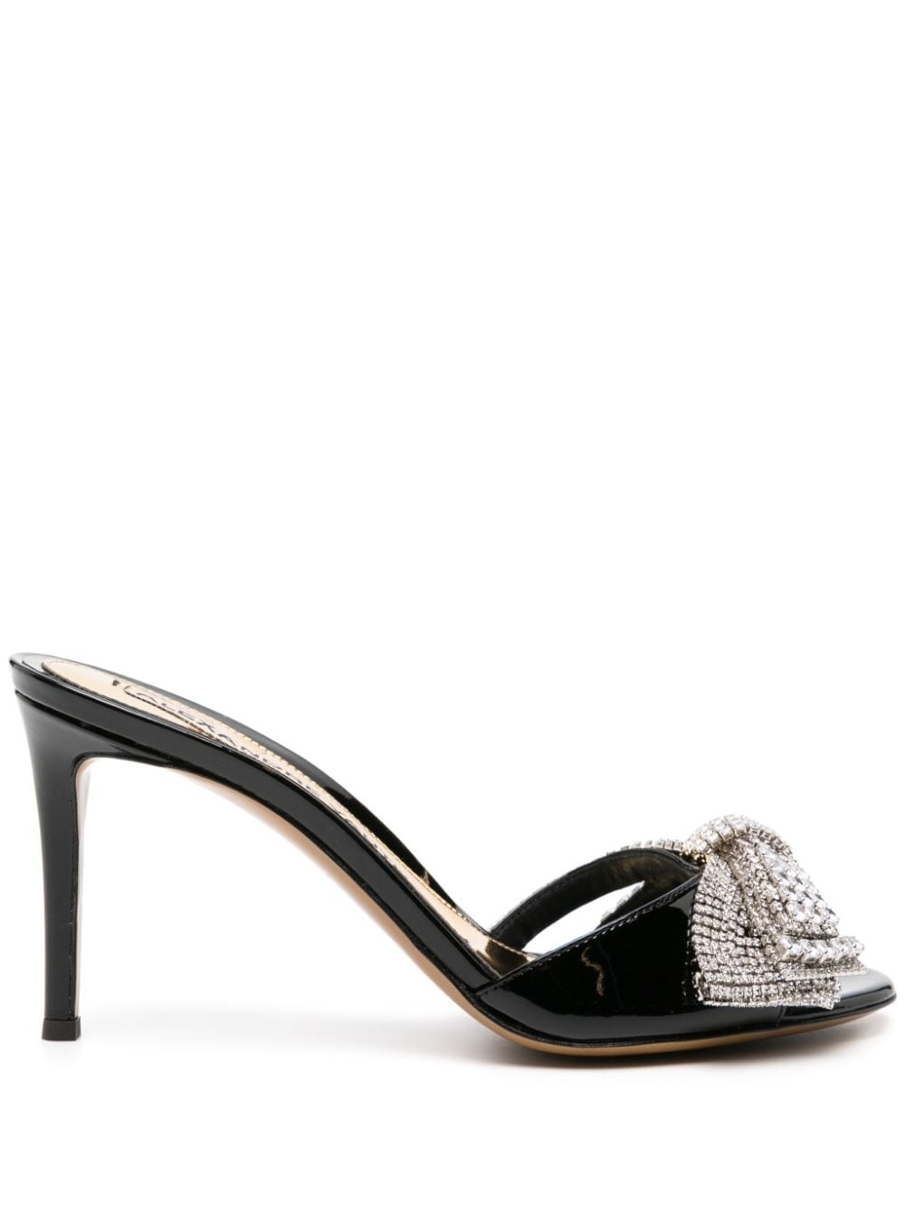 85mm bow-detail patent sandals Highlights - Black - Calf leather - Patent finish - Crystal embellishment - Oversize bow detail - Almond open toe - Slip-on style - Branded leather footbed - 90mm high stiletto heel - Leather sole Made in Italy Composition Other fibres 100% SIZE & FIT Measurement HEEL 3.54 in(9 cm)