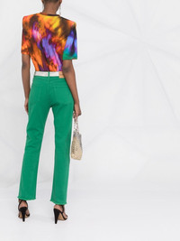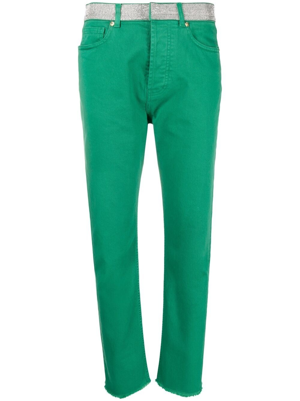 embellished-band jeans green stretch cotton crystal embellishment belt loops button fly fastening classic five pockets slim cut full-length Made in Italy Composition glass 100%, Cotton 99%, Spandex/Elastane 1% SIZE & FIT Model measurements Height 5 ft 11 in(1.8 m) Bust/Chest 31.49 in(80 cm) Hips 36.61 in(93 cm) Waist 24.4 in(62 cm) FittingInformation This piece fits true to size. We recommend you get your regular size Designed to be fitted at the waist and through the thigh, loose from the knee Made with a mid-weight non-stretch fabric Washing instructions Dry Clean Only