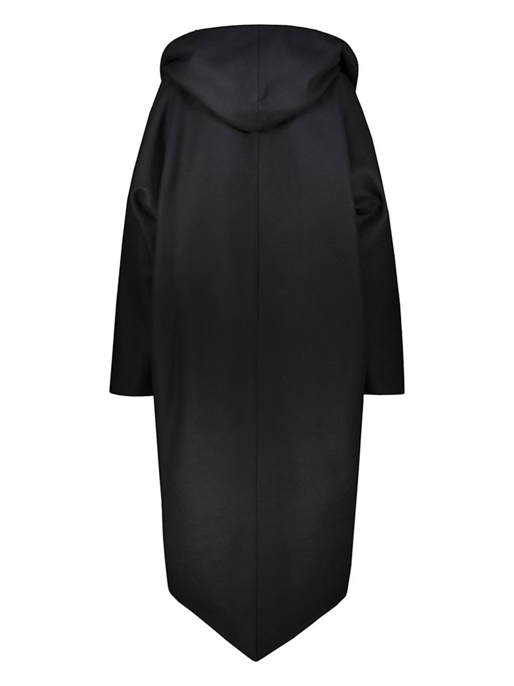 hooded asymmetrical coat Highlights - Black - Hooded neckline - Asymmetrical hem - Long sleeves - Concealed pockets Imported Composition Outer: Virgin Wool 70%, Polyamide 30% Lining: Cupro 100% Washing instructions Read Manufacturer Guidelines