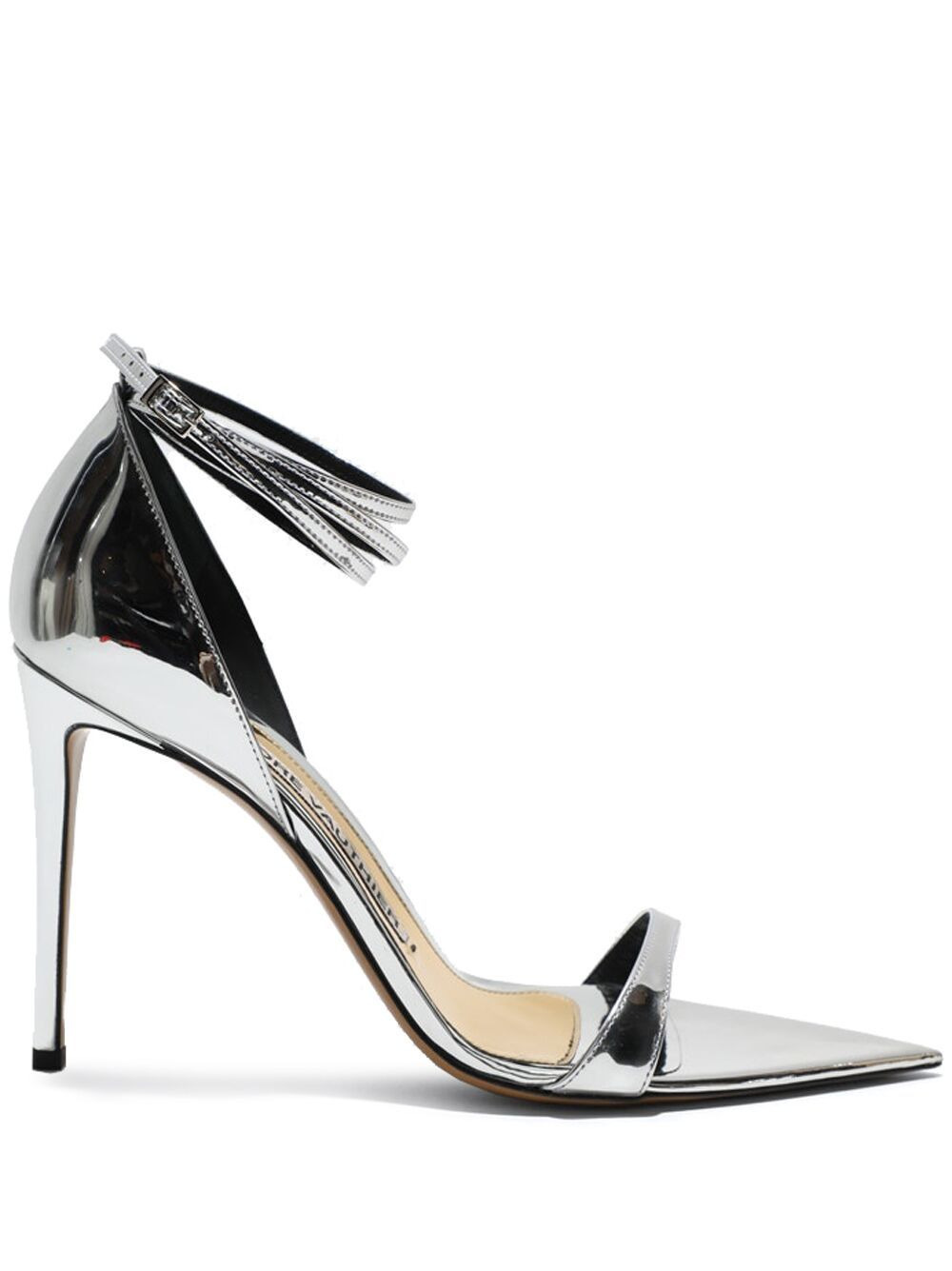 metallic-leather sandals Highlights - Silver-tone - Leather - Metallic finish - Pointed toe - Buckle-fastening ankle strap - Branded leather insole - High stiletto heel Imported Composition Outer: Patent Leather 100% Sole: Leather 100%