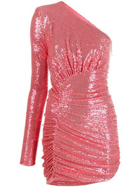 One-sleeve ruched sequined stretch-jersey mini dress