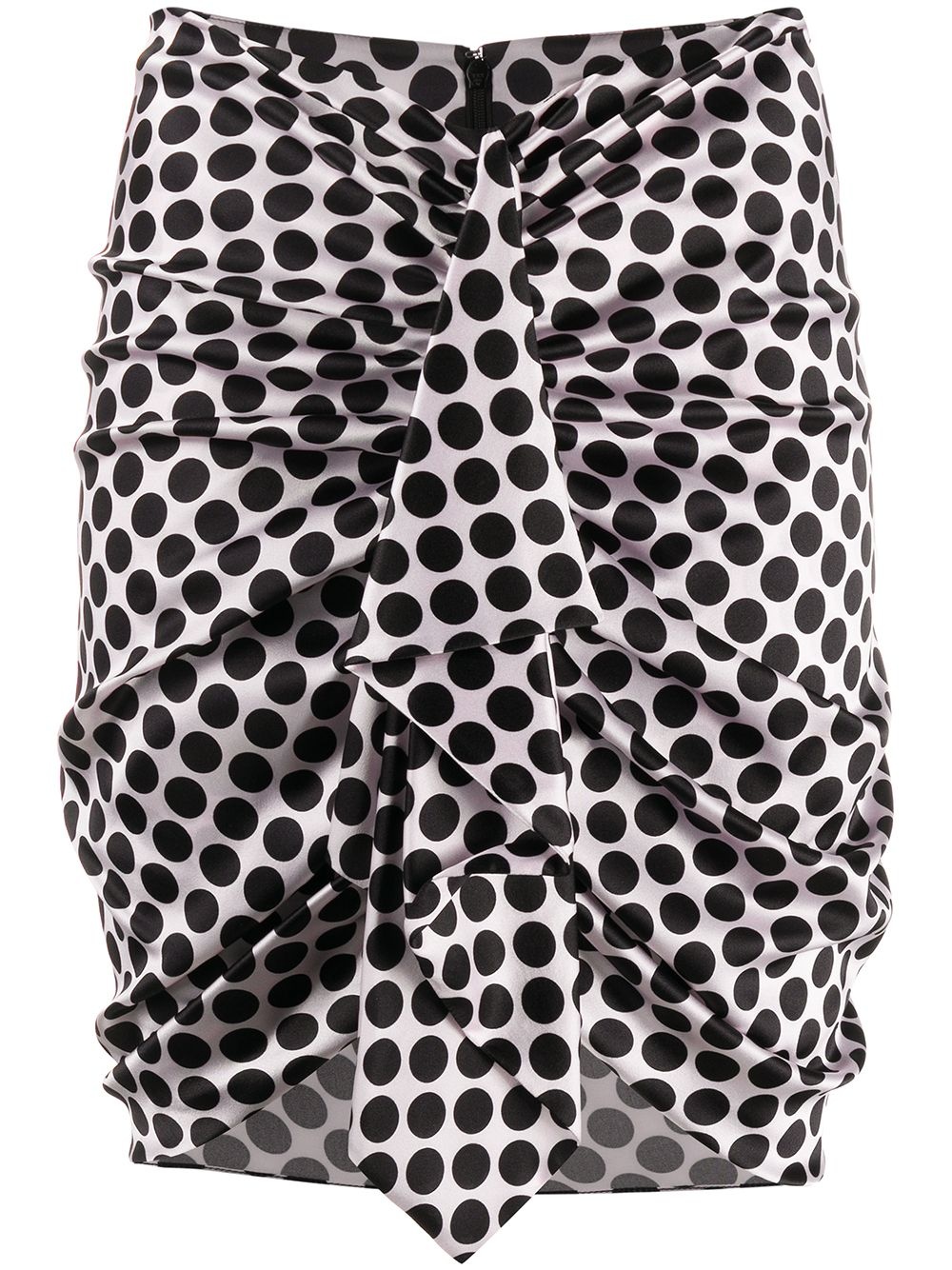 ruched mini skirt Light pink and black silk blend ruched mini skirt from Alexandre Vauthier featuring a polka dot print, a concealed zip fastening and a short length. Imported Composition Silk 93%, Spandex/Elastane 7% SIZE & FIT Model measurements Height 5 ft 11 in(1.8 m) Bust/Chest 31.49 in(80 cm) Hips 35.82 in(91 cm) Waist 24.8 in(63 cm) FittingInformation This piece fits true to size. We recommend you get your regular size Cut for a slim fit Made with a lightweight stretch fabric Washing instructions Dry Clean Only