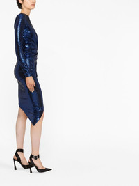 sequin-embellished asymmetric dress Alexandre Vauthier is renowned for creating high-octane provocative designs. A fine example, this sapphire blue midi dress is defined by its asymmetric construction and shimmering sequin embellishment. Imported Composition Outer: Polyamide 87%, Polyester 8%, Elastane 5% Lining: Polyester 95%, Elastane 5% SIZE & FIT Model measurements Height 5 ft 10 in(1.78 m) Bust/Chest 30.7 in(78 cm) Hips 34.64 in(88 cm) Waist 23.22 in(59 cm) Measurement HIPS 25.19 in(64 cm) WAIST 22.83 in(58 cm) FittingInformation This piece fits true to size. We recommend you get your regular size Cut for a slim fit Made with a mid-weight stretch fabric Washing instructions Dry Clean Only