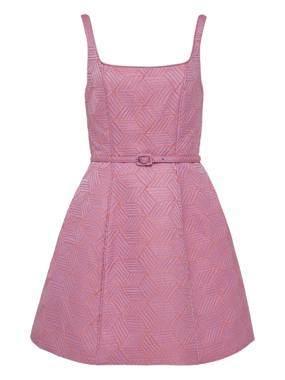 geometric-patterned belted dress Highlights Imported Composition Polyester 97%