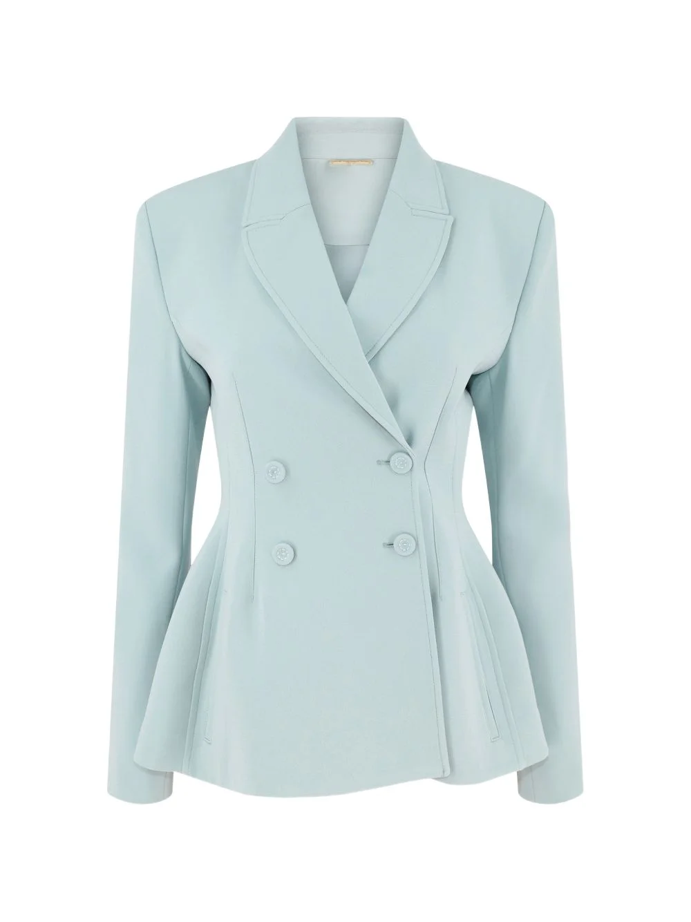 Helen double-breasted jacket Highlights - Sky blue - Double-breasted - Button fastening - Long sleeves - Structured shoulders - Peplum hem Imported Composition Fabric 100% Washing instructions Read Manufacturer Guidelines