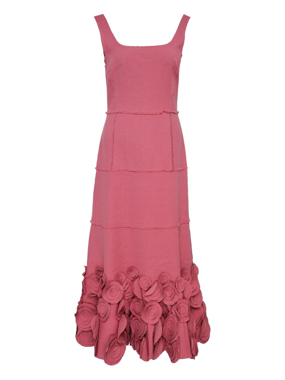 rose-embellished tiered dress Highlights - Rose pink - Tiered skirt - Raw-edge detail - Sleeveless - Square neck - Rose embellishment Imported Composition Fabric 100% Washing instructions Read Manufacturer Guidelines