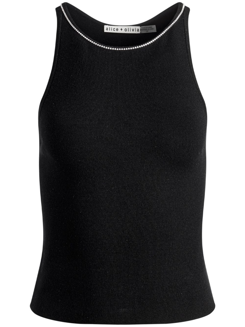 Allen rhinestone-embellished tank top Highlights - Black - Round neck - Rhinestone embellishment - Sleeveless - Heart motif - Fringe detailing - Straight hem Imported Composition Viscose 47%, Polyester 31%, Nylon 20%, Elastane 2%