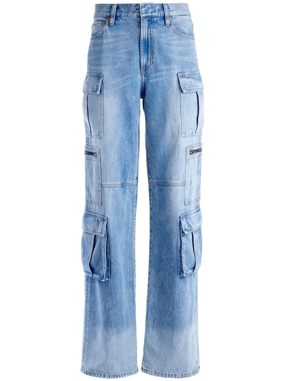 Cay baggy denim cargo trousers Designed to sit high on the waist, these cargo jeans by Alice + Olivia are characterised by the multiple patch and zip-up pockets adorning both legs. Fastening with a concealed closure, this style has elongated legs and is finished with a contrast leather logo patch to the rear. Highlights - Blue - Cotton - Denim - High waist - Concealed front fastening - Belt loops - Rear logo patch - Classic five pockets - Six cargo pockets on legs Made in United States Composition Cotton 99%, Elastane 1% Washing instructions Machine Wash