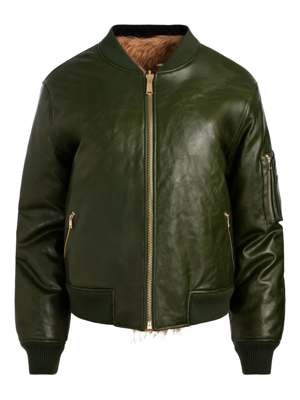 Becky reversible faux-fur bomber jacket Highlights - Green and brown - Reversible - Zip fastening - Ribbed trims - Zip pocket at the sleeve Imported Composition Polyurethane 100%, Artificial Fur 100% Washing instructions Dry Clean Only