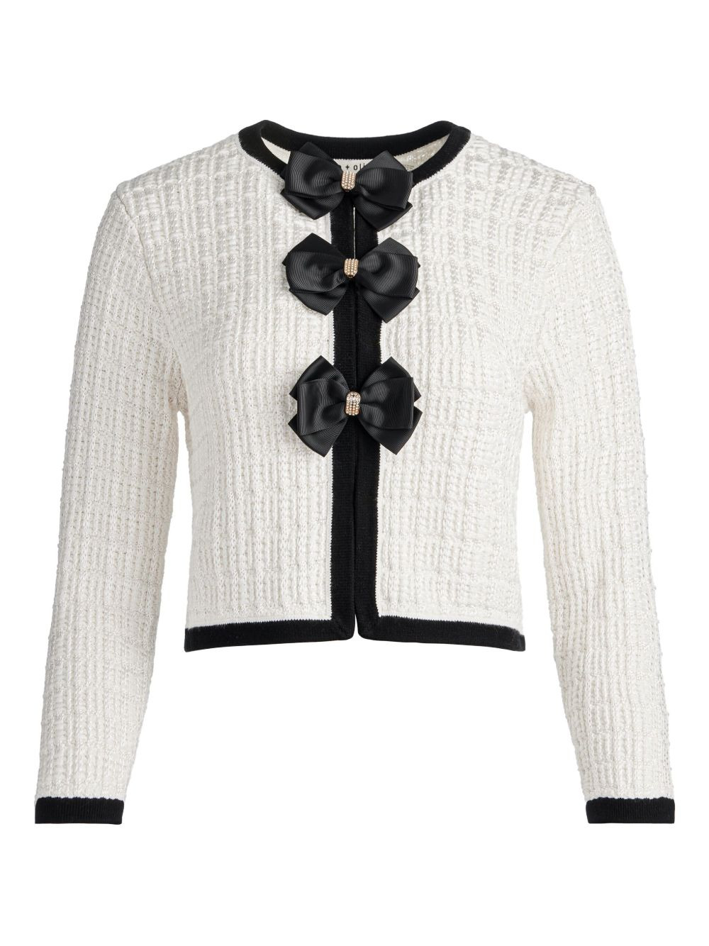 bow-detail cardigan Highlights - Off-white - Bow detailing - Rhinestone embellishment - Contrasting trim Imported Composition Viscose 61%, Cotton 20%, Nylon 12%, Fabric 4%, Polyester 3% Washing instructions Dry Clean Only