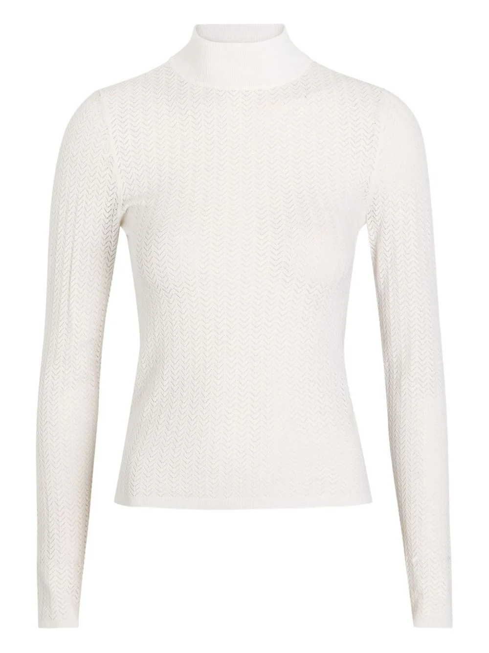 chevron-design long-sleeve top Highlights - Soft white - Chevron pattern - Long sleeves - Ribbed high neck Imported Composition Viscose 60%, Polyester 37%, Nylon 3% Washing instructions Dry Clean Only