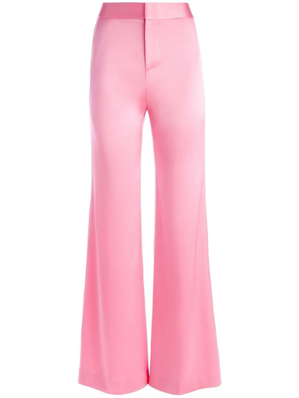 Deanna satin-finish palazzo pants light pink satin finish concealed front fastening wide leg two side slit pockets two rear welt pockets Made in United States Composition Body: Triacetate 75%, Polyester 25%