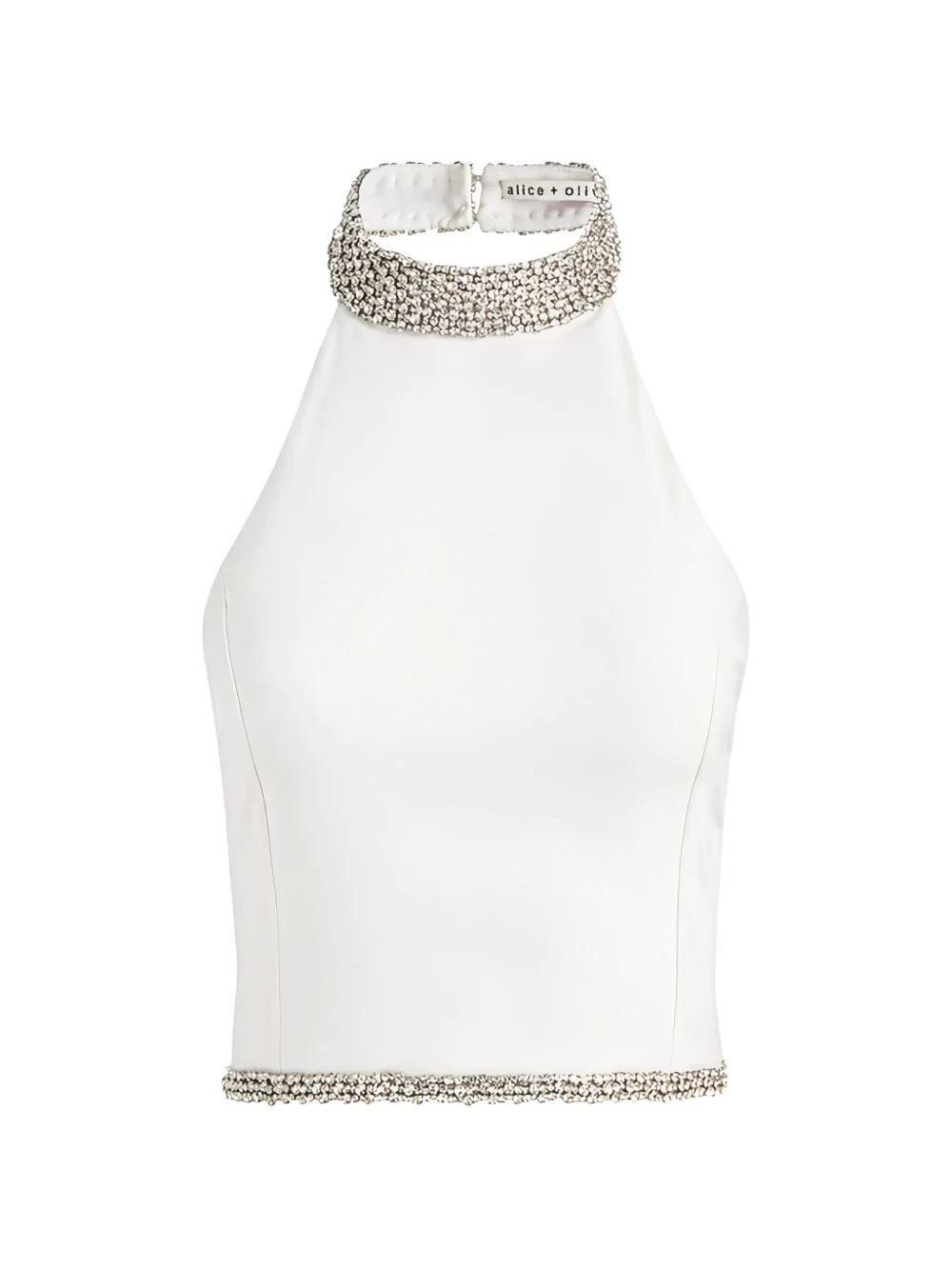 embellished halterneck top Highlights - White - Embellishment - Halterneck - Sleeveless Imported Composition Recycled Polyester 62%, Polyester 36%, Spandex/Elastane 2% Washing instructions Read Manufacturer Guidelines