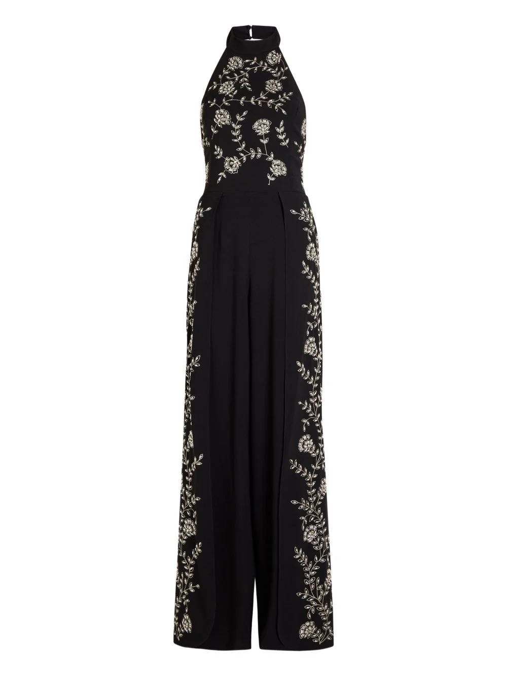 floral-embroidered jumpsuit Highlights - Black - Floral embroidery - Halterneck - Keyhole detail - Wide leg Imported Composition Recycled Polyester 62%, Polyester 36%, Elastane 2% Washing instructions Dry Clean Only