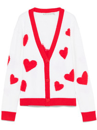 heart-motif cardigan Highlights - White - Front button fastening - Ribbed cuffs and hem - V-neck - Long sleeves Imported Composition Wool 91%, Nylon 9% SIZE & FIT Model measurements Height 5 ft 9 in(1.75 m) Bust/Chest 34.64 in(88 cm) Hips 36.61 in(93 cm) Waist 26.37 in(67 cm) FittingInformation Designed for a relaxed fit, this piece allows for comfort and movement when worn Made with a midweight knit, this piece offers some stretch