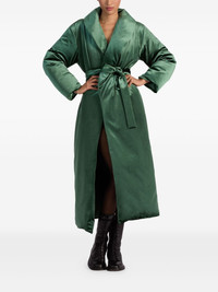 Ima tie-belt puffer coat Highlights - Green - Tie belt - Long sleeves - Wrap design - Shawl lapels - Inset pockets Imported Composition Polyester 88%, Elastane 12% Washing instructions Dry Clean Only