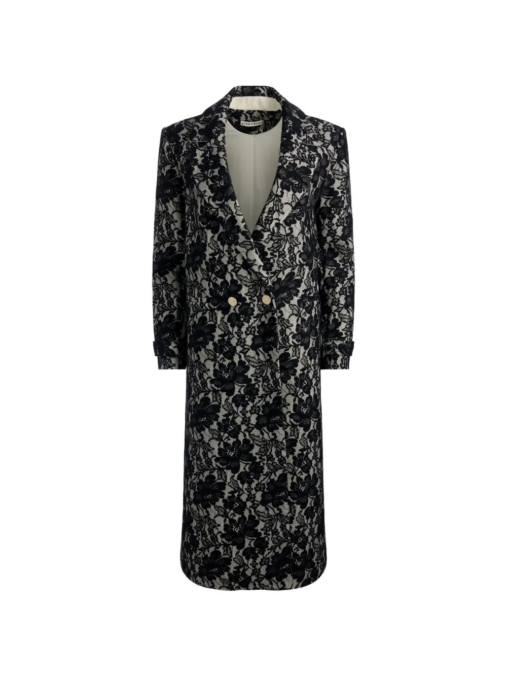 Jimmy floral long coat Highlights - Black - Floral pattern - Double-breasted - Notched lapel - Front button closure Imported Composition Polyester 62%, Cotton 16%, Nylon 12%, Viscose 9%, Acrylic 1% Washing instructions Dry Clean Only