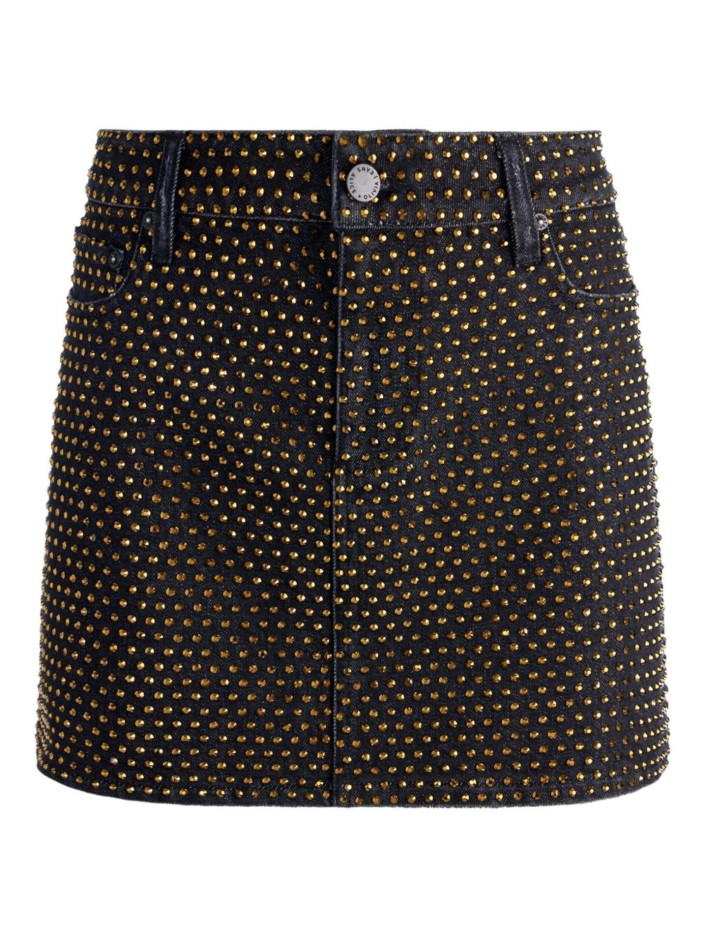 Joss denim skirt Highlights - Black - Crystal embellishment - High rise - Mini length - A-line shape - Classic five pockets Imported Composition Cotton 98%, Elastane 2% Washing instructions Dry Clean Only