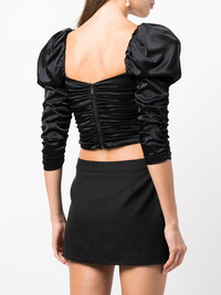 Katrice ruched puff-sleeve top jet black silk blend ruched detailing square neck three-quarter length puff sleeves cropped Imported Composition Lining: Polyester 94%, Elastane 9% Outer: Silk 91%, Elastane 9% SIZE & FIT Model measurements Height 5 ft 10 in(1.77 m) Bust/Chest 33.85 in(86 cm) Hips 35.03 in(89 cm) Waist 24.01 in(61 cm) FittingInformation This piece fits true to size. We recommend you get your regular size Cut for a close fit Made with a mid-weight fabric Washing instructions Read Manufacturer Guidelines