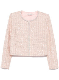 Kidman jacket Highlights - Blush pink - Tweed - Metallic threading - Front hook and eye fastening - All-over sequin embellishment - Faux-pearl embellished trim - Crystal embellished trim - Crew neck - Drop shoulder - Long sleeves - Satin lining - Straight hem - Cropped Imported Composition Outer: Polyester 75%, Acrylic 25% Lining: Recycled Polyester 100%