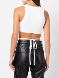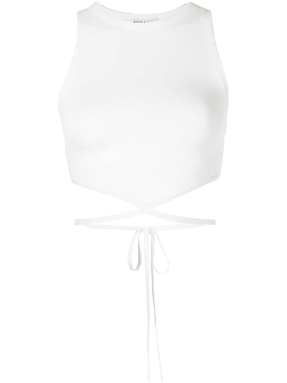 Latia sleeveless crop tank top cloud white stretch-design round neck sleeveless wraparound style rear tie fastening Imported Composition Viscose 76%, Nylon 22%, Spandex/Elastane 2% SIZE & FIT Model measurements Height 5 ft 10 in(1.77 m) Bust/Chest 29.92 in(76 cm) Hips 35.03 in(89 cm) Waist 24.01 in(61 cm) FittingInformation This piece fits true to size. We recommend you get your regular size Cut for a close fit Made with a mid-weight stretch fabric Washing instructions Dry Clean Only