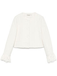 Millie jacket Highlights - White - Front button fastening - Shoulder pads - Full lining - Cropped Imported Composition Outer: Polyester 100%, Silk 100%, Nylon 67%, Cotton 23%, Elastane 10% Lining: Recycled Polyester 100% SIZE & FIT Model measurements Height 5 ft 9 in(1.76 m) Bust/Chest 31.1 in(79 cm) Hips 36.61 in(93 cm) Waist 24.8 in(63 cm) FittingInformation Designed for a boxy fit, intended for a loose fit throughout The internal shoulder pads offer a structured shape Made from a midweight fabric Washing instructions Specialist Cleaning