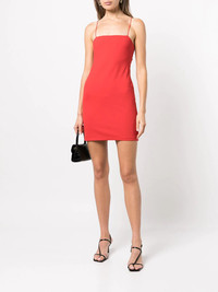 Nelle spaghetti strap dress Nelle spaghetti strap dress from Alice + Olivia featuring clay red, cut-out detailing, square neck, spaghetti straps, rear zip fastening and thigh-length. Imported Composition Nylon 100% SIZE & FIT Model measurements Height 5 ft 10 in(1.77 m) Bust/Chest 33.85 in(86 cm) Hips 35.03 in(89 cm) Waist 24.01 in(61 cm) FittingInformation This piece fits true to size. We recommend you get your regular size Cut for a close fit Made with a mid-weight stretch fabric Washing instructions Dry Clean Only