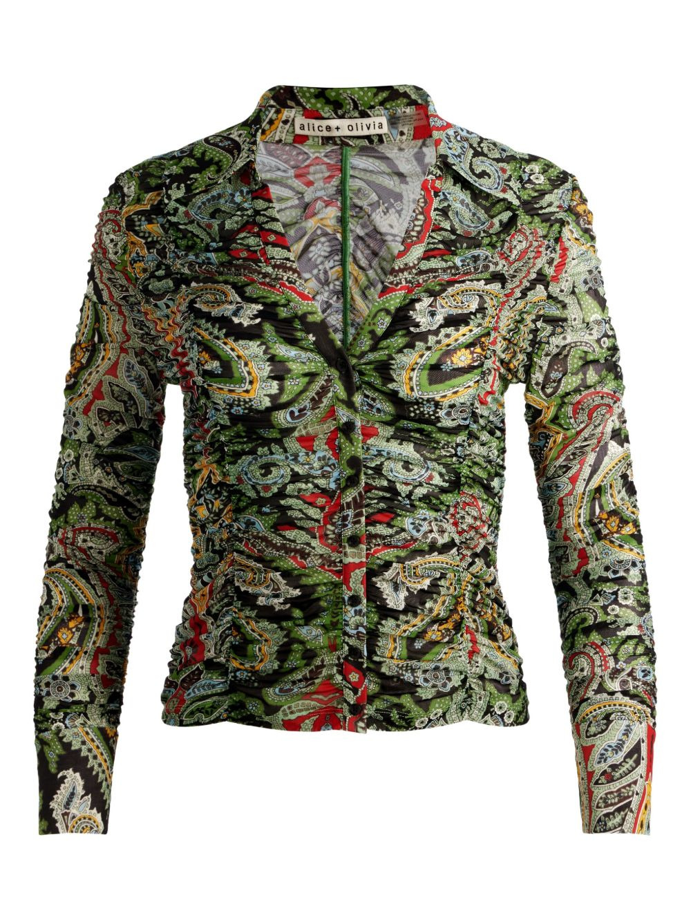 Portia paisley-print ruched blouse Highlights - Green - Paisley print - Ruched detailing - Button front - Long sleeves - Collared neck Imported Composition Polyester 90%, Elastane 10%