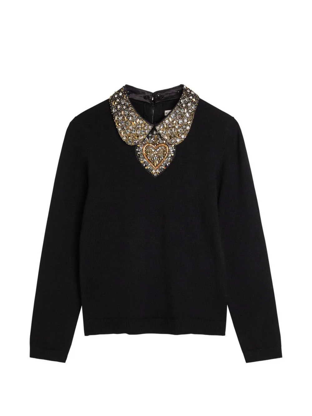 Porla embellished sweater Highlights - Black - Embellishment - Heart motif - Round-neck - Long sleeves - Fitted cuffs Imported Composition Wool 99%, Elastane 1% Washing instructions Dry Clean Only