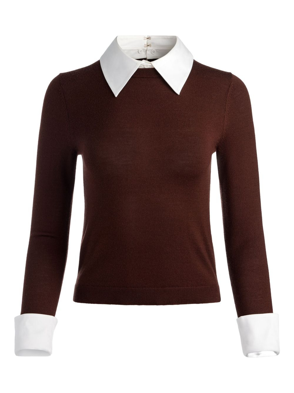 Porla sweater Highlights - Dark brown - Wool blend - Collared neckline - Long sleeves Imported Composition Wool 99%, Elastane 1% Washing instructions Dry Clean Only