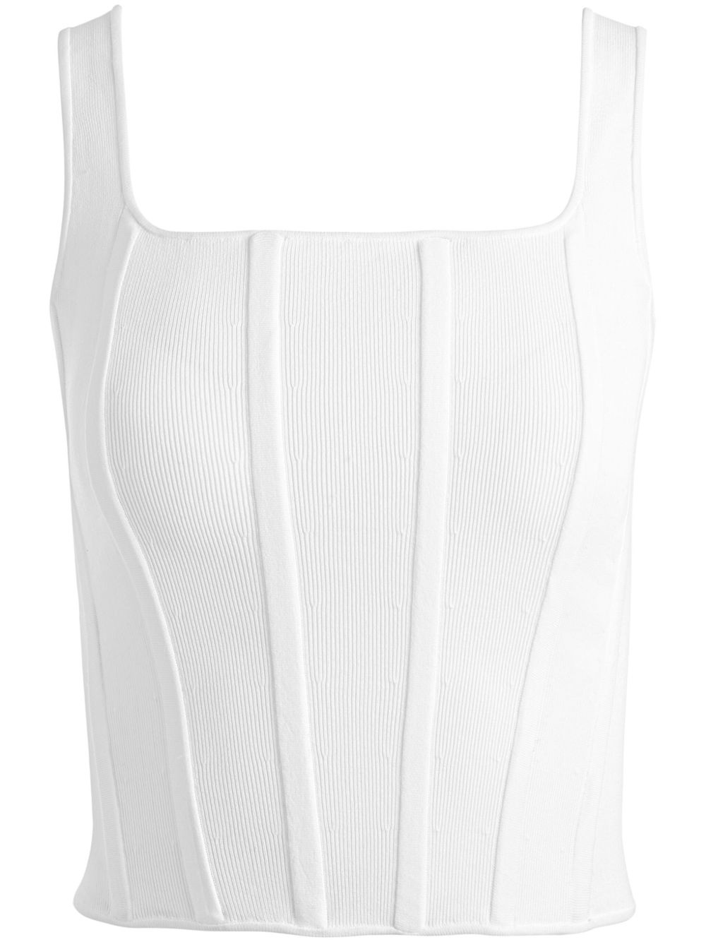 Sariah corset top Highlights - White - Exposed rear zip fastening - Square neck - Sleeveless - Cropped Imported Composition Viscose 61%, Nylon 36%, Elastane 3% Washing instructions Dry Clean Only