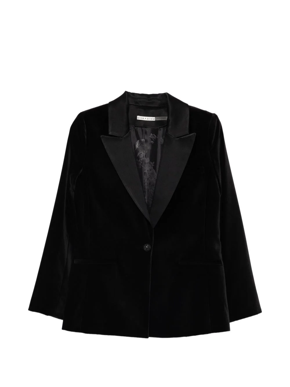 Silas velvet shawl-collar blazer Highlights - Black - Shawl collar - Button fastening - Long sleeves - Welt pocket - Velvet texture Imported Composition Outer: Polyester 97%, Spandex/Elastane 3% Lining: Polyester 100%, Recycled Polyester 100% Washing instructions Dry Clean Only