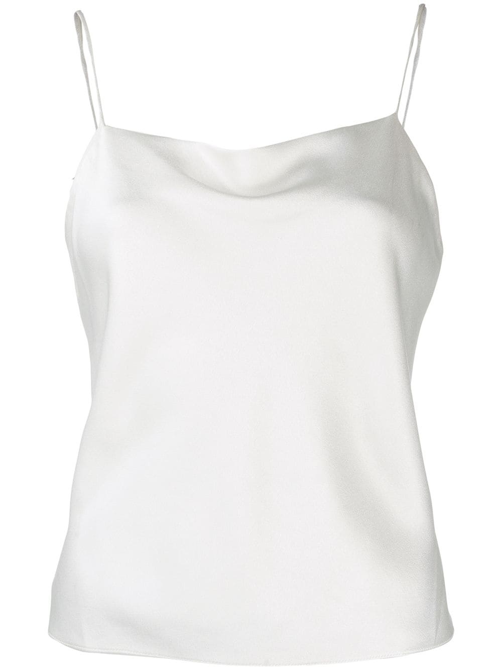 square neck camisole top Off-white square neck camisole top from Alice + Olivia featuring a square neck, spaghetti straps, a straight hem and a slim fit. Imported Composition Triacetate 75%, Polyester 25% SIZE & FIT Model measurements Height 5 ft 10 in(1.78 m) Bust/Chest 32.67 in(83 cm) Hips 35.82 in(91 cm) Waist 24.01 in(61 cm) FittingInformation This piece fits true to size. We recommend you get your regular size Cut for a relaxed fit Made with a mid-weight fabric Washing instructions Dry Clean Only