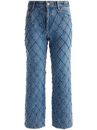 WEEZY QUILTED EMBELLISHED CROPPED MID RISE JEAN