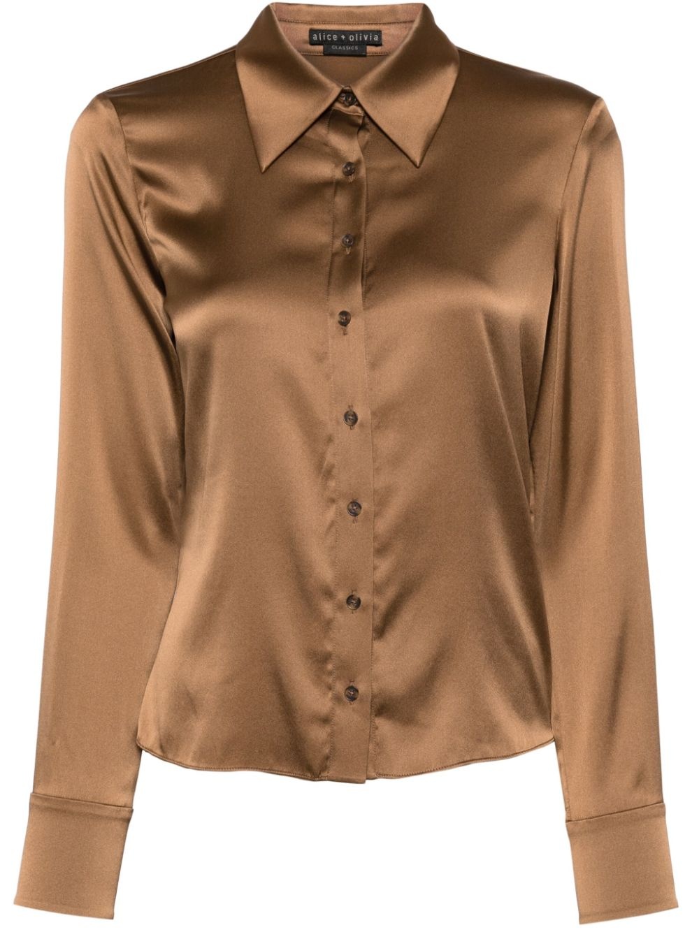 Willa shirt Highlights - Camel brown - Silk blend - Dart detailing - Classic collar - Front button fastening - Long sleeves - Buttoned cuffs - Curved hem - Full lining Imported Composition Outer: Silk 92%, Elastane 8% Lining: Recycled Polyester 100% SIZE & FIT Model measurements Height 5 ft 9 in(1.76 m) Bust/Chest 31.1 in(79 cm) Hips 35.03 in(89 cm) Waist 24.4 in(62 cm) FittingInformation Designed for a slim fit that sits just away from the body offering a close yet comfortable fit Made from a midweight non-stretch fabric This piece fits true to size – take your usual size