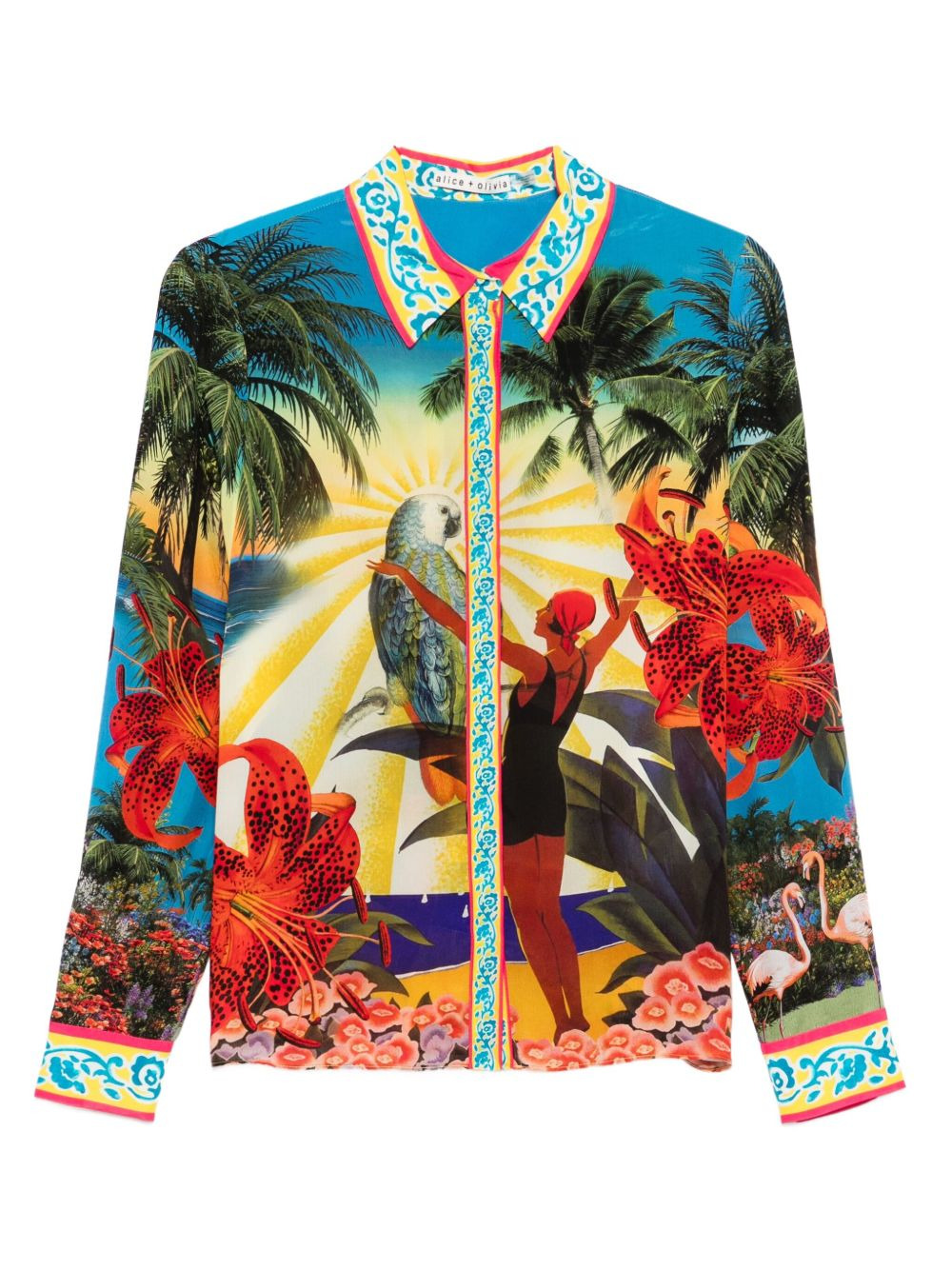 Willa tropical-print silk shirt Highlights Imported Composition Silk 100% SIZE & FIT Model measurements Height 5 ft 9 in(1.75 m) Bust/Chest 34.64 in(88 cm) Hips 36.61 in(93 cm) Waist 26.37 in(67 cm)