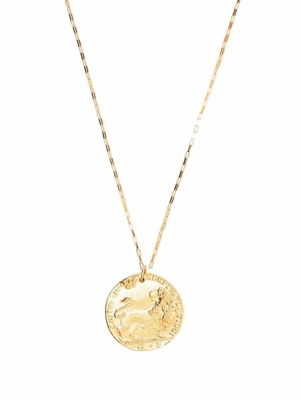 Il Leone medallion necklace Alighieri draws inspiration from Dante Alighieri’s 'Divine Comedy’ with each jewellery piece corresponding to one of the poet’s 100 poems. Handcrafted from 24kt gold plated bronze in Hatton Garden, London, this necklace features a restored antique Venetian coin depicting a lion's head that references the lion in Dante's 'Inferno' and symbolises strength and courage. Highlights - 24kt gold-plated bronze - Medallion pendant - Cable-link chain - Spring-ring fastening Made in United Kingdom SIZE & FIT Model measurements Height 6 ft 2 in(1.87 m) Bust/Chest 38.18 in(97 cm) Hips 36.61 in(93 cm) Waist 29.13 in(74 cm) Measurement Length when open 22.44 in(57 cm) PENDANT LENGTH 1.18 in(3 cm) PENDANT WIDTH 1.06 in(2.7 cm) WIDTH 0.11 in(0.3 cm)