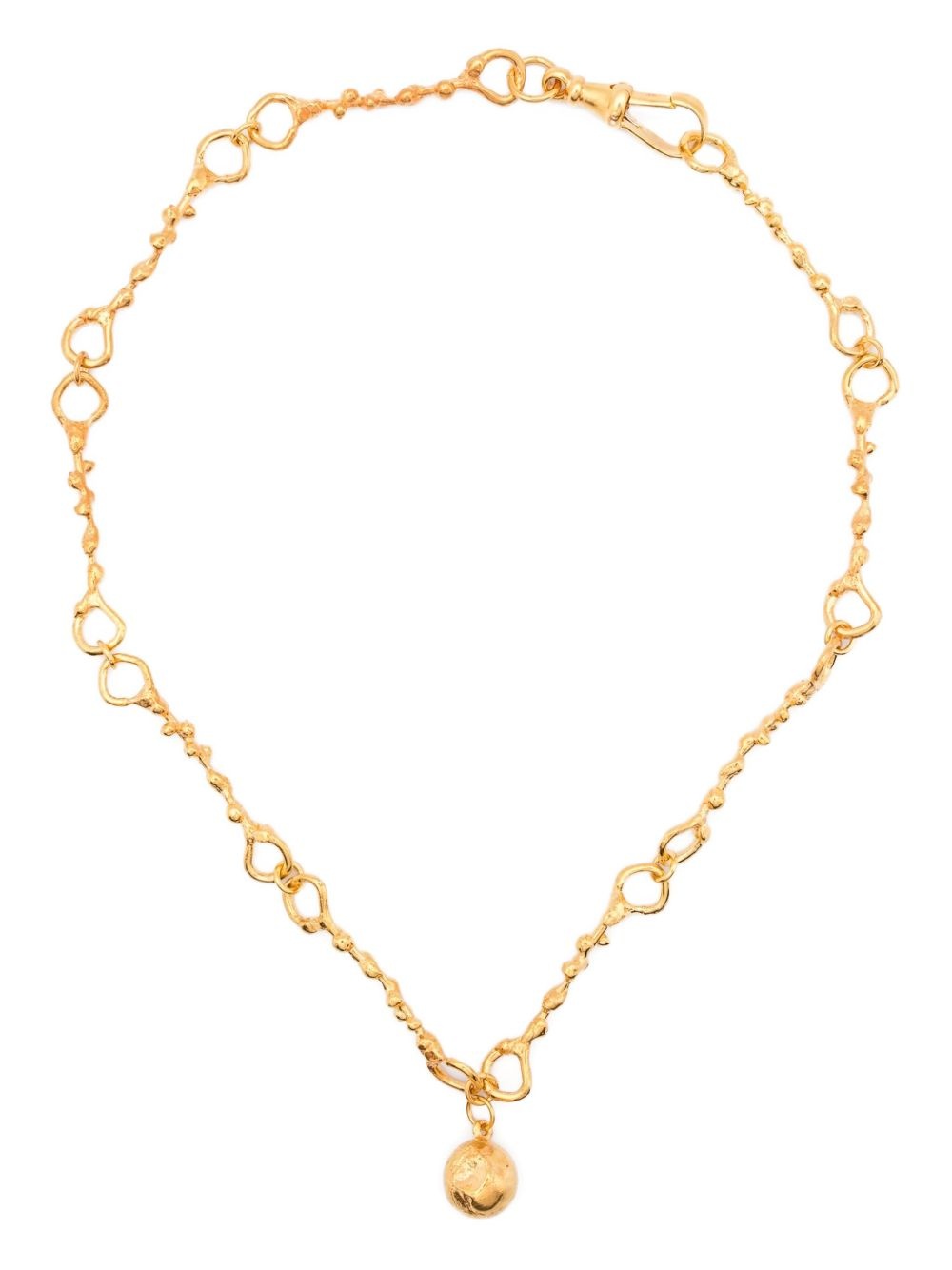 The Ball of Curiosity necklace Highlights - Gold-tone - Textured chain - Ball pendant - Clasp fastening - Irregular links - Normal everyday use and external agents may reduce the lustre of gemstones and gold surfaces. to maintain, use specific, non-abrasive products specially meant for cleaning jewellery. Made in United Kingdom SIZE & FIT Model measurements Height 5 ft 9 in(1.75 m) Bust/Chest 32.67 in(83 cm) Hips 36.22 in(92 cm) Waist 24.8 in(63 cm) Measurement Length when open 17.71 in(45 cm) PENDANT LENGTH 0.74 in(1.9 cm) PENDANT WIDTH 0.47 in(1.2 cm) WIDTH 0.35 in(0.9 cm)