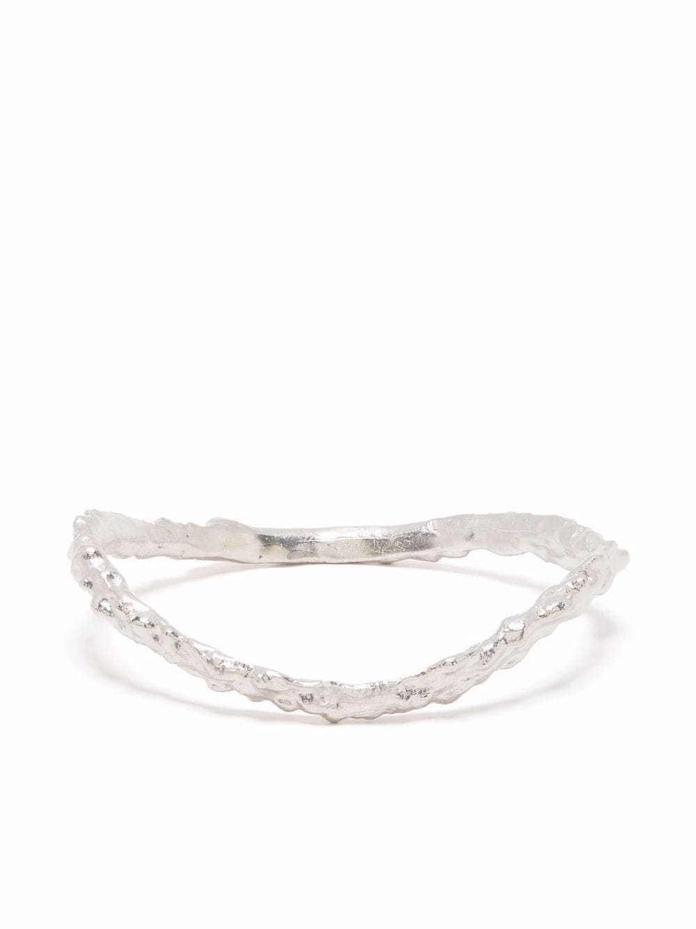 The Inferno bangle Alighieri's The Inferno bangle is inspired by poet Dante's poem of the same name. It's handcrafted from recycled sterling silver in London's famed Hatton Garden jewellery district. The hammered effect gives it an antique feel. Highlights - Sterling silver - Hammered-effect finish - Slip-on style - Curved corners Made in United Kingdom SIZE & FIT Model measurements Height 5 ft 10 in(1.78 m) Bust/Chest 31.49 in(80 cm) Hips 36.22 in(92 cm) Waist 25.59 in(65 cm) Measurement CIRCUMFERENCE 7.99 in(20.3 cm)