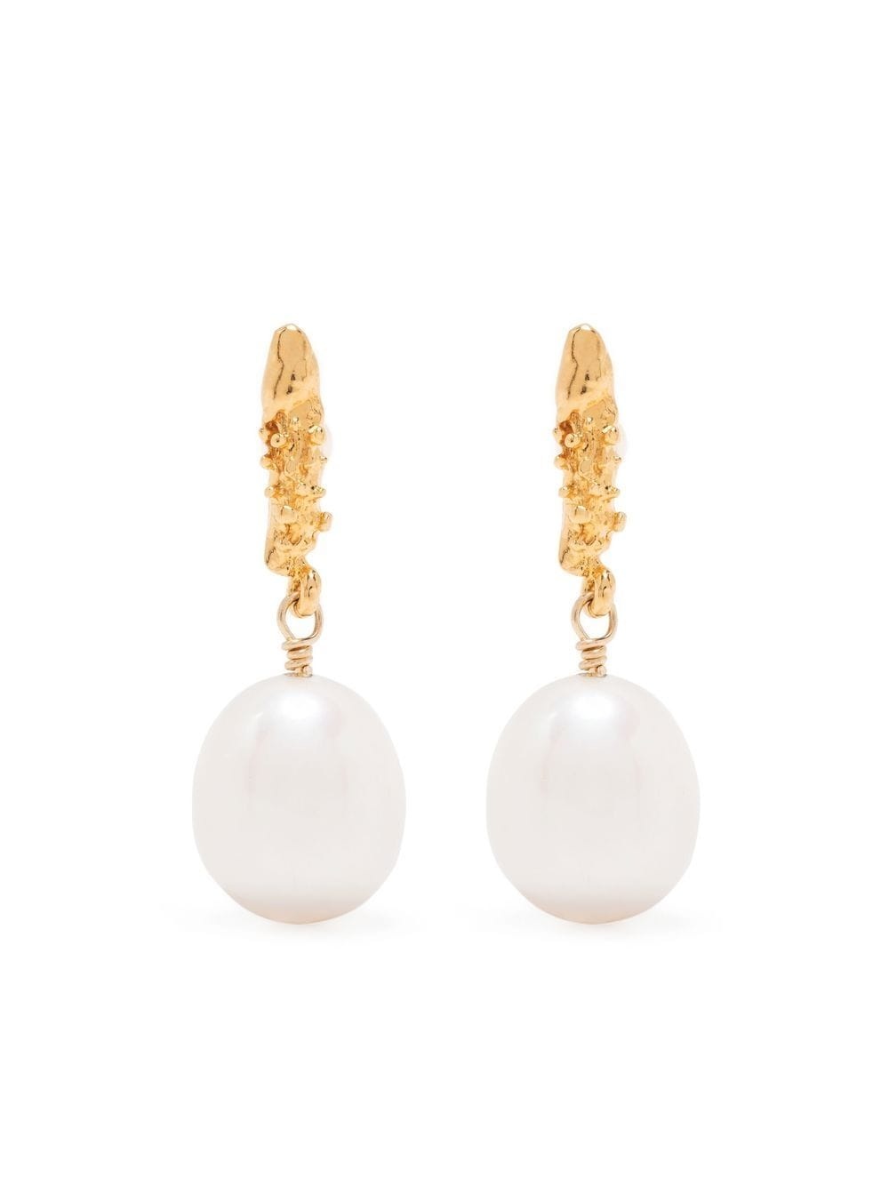 The Lustre of The Moon earrings Highlights - Gold plated bronze - Hand-hammered effect - Freshwater pearls - For pierced ears - These earrings come as a pair. Made in United Kingdom SIZE & FIT Model measurements Height 5 ft 10 in(1.78 m) Bust/Chest 31.49 in(80 cm) Hips 36.22 in(92 cm) Waist 25.59 in(65 cm) Measurement Weight (single earring) 4 g(4 g) HEIGHT 1.25 in(3.2 cm) WIDTH 0.47 in(1.2 cm)