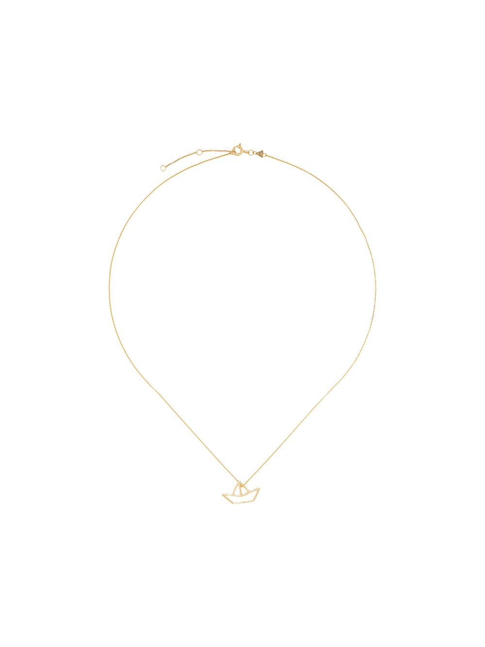 boat pendant necklace Yellow gold gold plated metal boat pendant necklace from Aliita. Made in Italy SIZE & FIT Model measurements Height 5 ft 10 in(1.78 m) Bust/Chest 33.07 in(84 cm) Hips 35.82 in(91 cm) Waist 25.98 in(66 cm) Measurement WIDTH 0.03 in(0.1 cm) TOTAL LENGTH 17.71 in(45 cm) PENDANT WIDTH 0.59 in(1.5 cm) Minimum Length 16.14 in(41 cm) PENDANT LENGTH 0.39 in(1 cm)