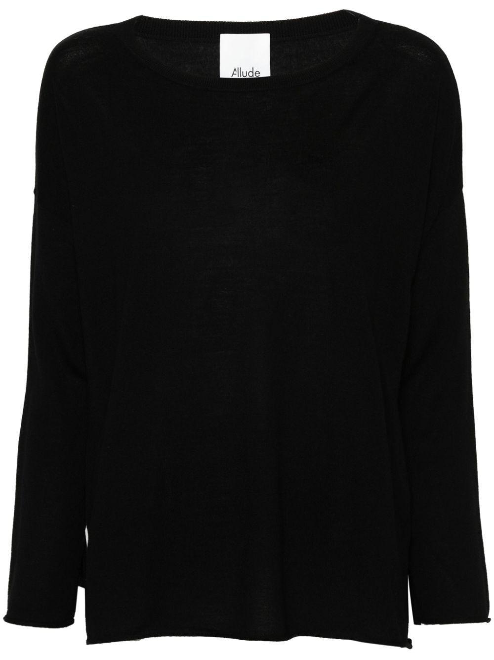 boat-neck virgin-wool jumper Highlights - Black - Virgin wool - Fine knit - Raw-cut edges - Ribbed boat neck - Drop shoulder - Long sleeves - Short side slits - Straight hem Imported Composition Virgin Wool 100% SIZE & FIT Model measurements Height 5 ft 10 in(1.78 m) Bust/Chest 33.46 in(85 cm) Hips 36.22 in(92 cm) Waist 23.22 in(59 cm) FittingInformation Designed to be unstructured, offering a loose fit throughout Made with a midweight knit, this piece offers some stretch