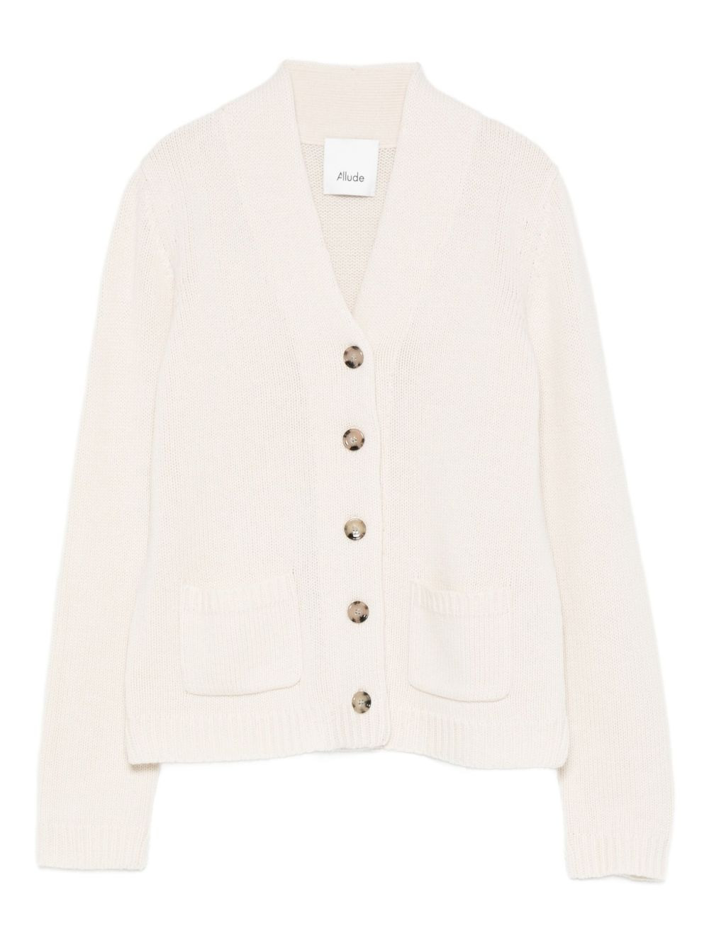button-detailed patch-pocket cardigan Highlights - Beige - V-neck - Button fastening - Patch pockets - Ribbed trims - Long sleeves Imported Composition Virgin Wool 70%, Cashmere 30% SIZE & FIT Model measurements Height 5 ft 10 in(1.77 m) Bust/Chest 33.07 in(84 cm) Hips 37 in(94 cm) Waist 24.8 in(63 cm) Washing instructions Hand Wash