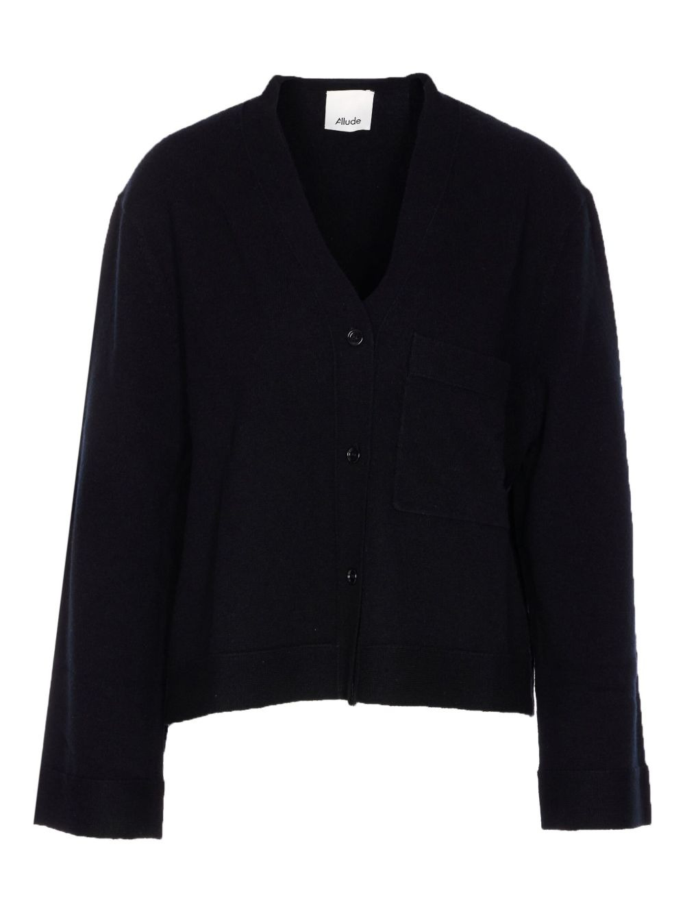 buttoned-front pocket cardigan black V-neck frontal button closure long sleeves patch pocket wool-cashmere blend Imported Composition Virgin Wool 70%, Cashmere 30% Washing instructions Read Manufacturer Guidelines