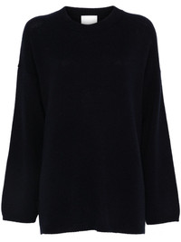 cashmere crew-neck sweater Highlights - Navy blue - Cashmere - Knitted construction - Crew neck - Drop shoulder - Long sleeves - Ribbed cuffs and hem - Short side slits - Straight hem Imported Composition Cashmere 100% SIZE & FIT Model measurements Height 5 ft 10 in(1.78 m) Bust/Chest 33.85 in(86 cm) Hips 36.61 in(93 cm) Waist 26.77 in(68 cm) FittingInformation Designed to be unstructured, offering a loose fit throughout Made with a midweight knit, this piece offers some stretch Washing instructions Hand Wash