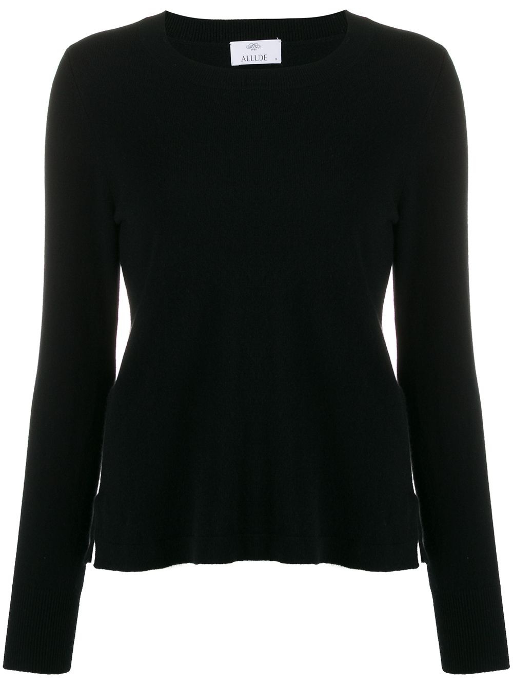 cashmere sweater Highlights - Jet black - Cashmere - Knitted construction - Round neck - Drop shoulder - Long sleeves - Ribbed cuffs and hem - Straight hem Made in Italy Composition Cashmere 100% SIZE & FIT FittingInformation This piece fits true to size. We recommend you get your regular size Cut for a relaxed fit Made with a mid-weight fabric Washing instructions Hand Wash