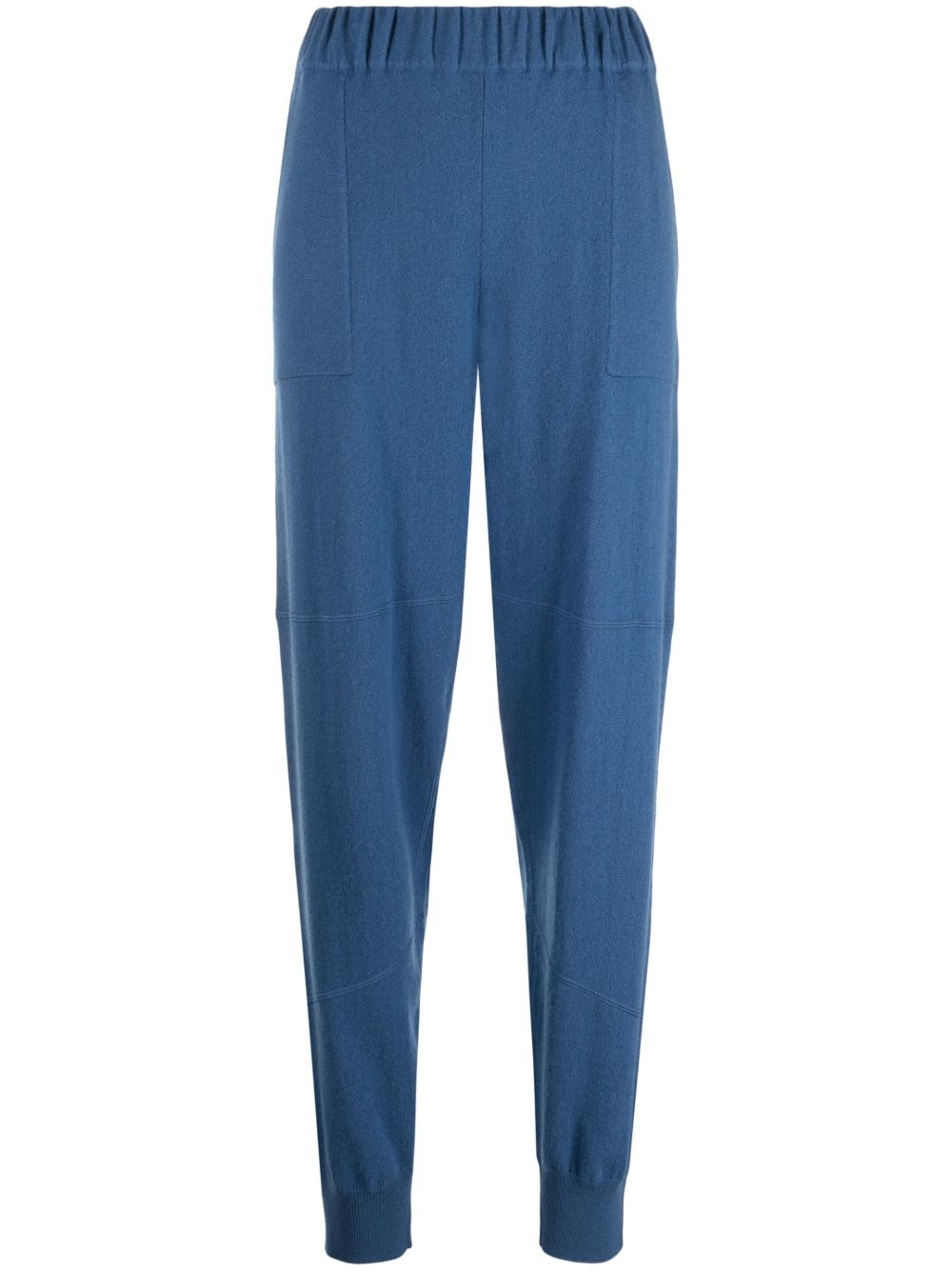 elasticated-waist knit joggers dark blue cashmere-virgin wool blend knitted construction elasticated waistband two side slit pockets elasticated ankles Imported Composition Virgin Wool 70%, Cashmere 30% SIZE & FIT Model measurements Height 5 ft 10 in(1.78 m) Bust/Chest 31.49 in(80 cm) Hips 37 in(94 cm) Waist 23.62 in(60 cm) FittingInformation This piece fits true to size. We recommend you get your regular size Designed to be loose over the leg with a fitted waist and hem Made with a mid-weight fabric Washing instructions Hand Wash