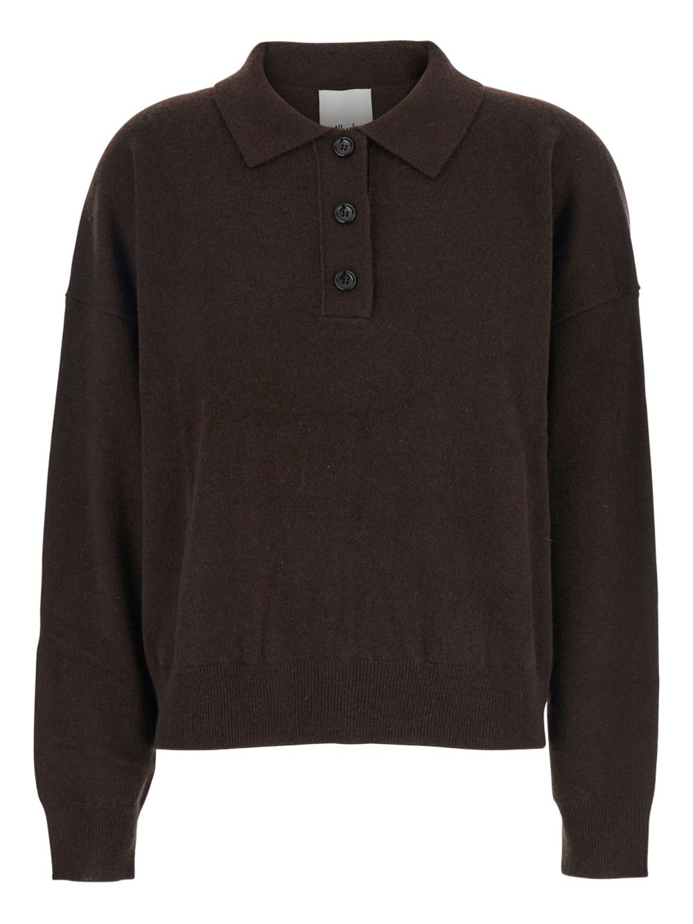 point-collar buttoned polo top Highlights - Brown - Polo neck - Button fastening - Long sleeves - Ribbed hem Imported Composition Virgin Wool 70%, Cashmere 30% Washing instructions Read Manufacturer Guidelines